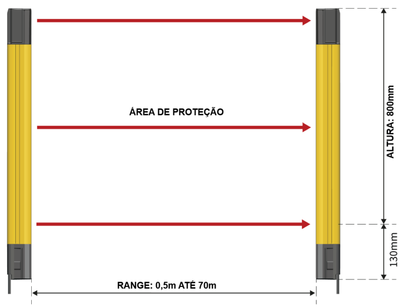 Altura do campo de proteção | de 300 a 2100 mm | (unidade individual) |
